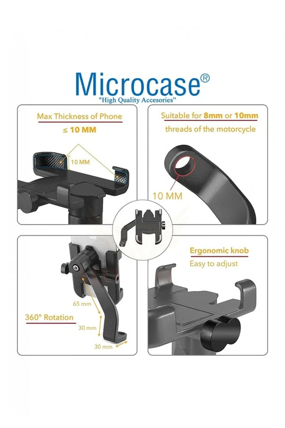 360 Bisiklet Motosiklet Ayna Bağlantılı Telefon Tutucu Aluminyum
