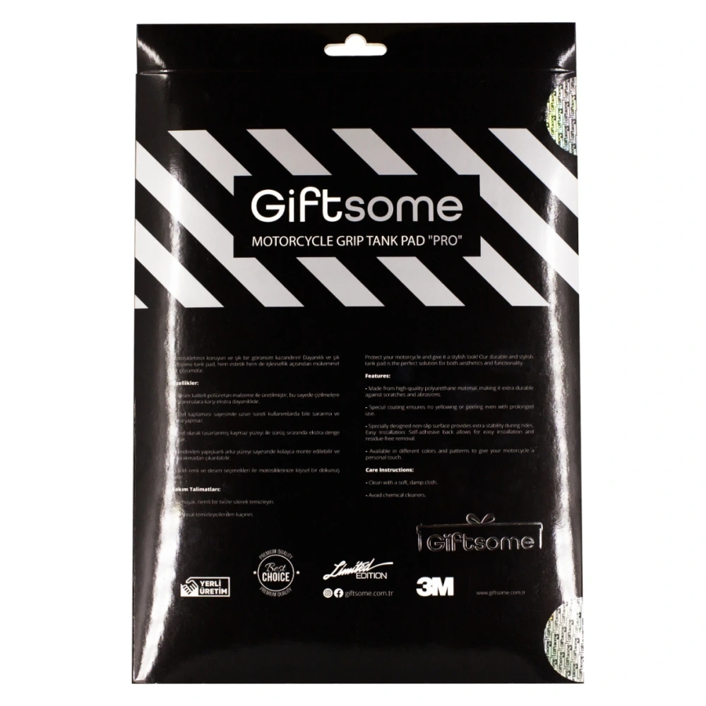 Grippatch’in asıl amacı, motosiklet kullanıcılarının konforunu ve güvenliğini en üst düzeye çıkarmaktır. Ürün, sıradan bir sticker değil; özel bir kaydırmaz yüzeye ve 6D karbon görsel yapıya sahiptir. Bu özellikleriyle hem dayanıklıdır hem de estetik bir görünüm sağlar. Grippatch'in benzersiz yüzeyi sararma veya soyulma gibi problemler yaşatmaz ve 2 yıl üretici garantisi altındadır.