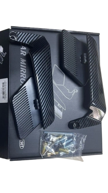Karbon desenli tasarımı ile şık bir görünüme sahip olan bu ayna, motosikletinizin estetiğini ön plana çıkarır.